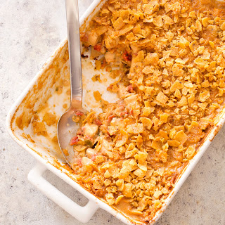 Bake until the filling is bubbling, about 15 minutes. Sprinkle the Fritos evenly over the top and bake until the Fritos are lightly browned, about 10 minutes. Cool the casserole 10 minutes. Serve.